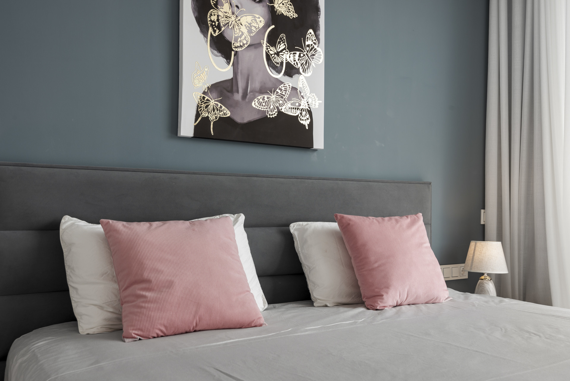 This spectacular property is beautifully crafted with the trendy and modern Scandinavian touch. It shows off clean and minimalist shades of blue tones to give a sense of cool and elegance to the home, and the vibrant artwork and ornaments add some flavour to the mix as well!