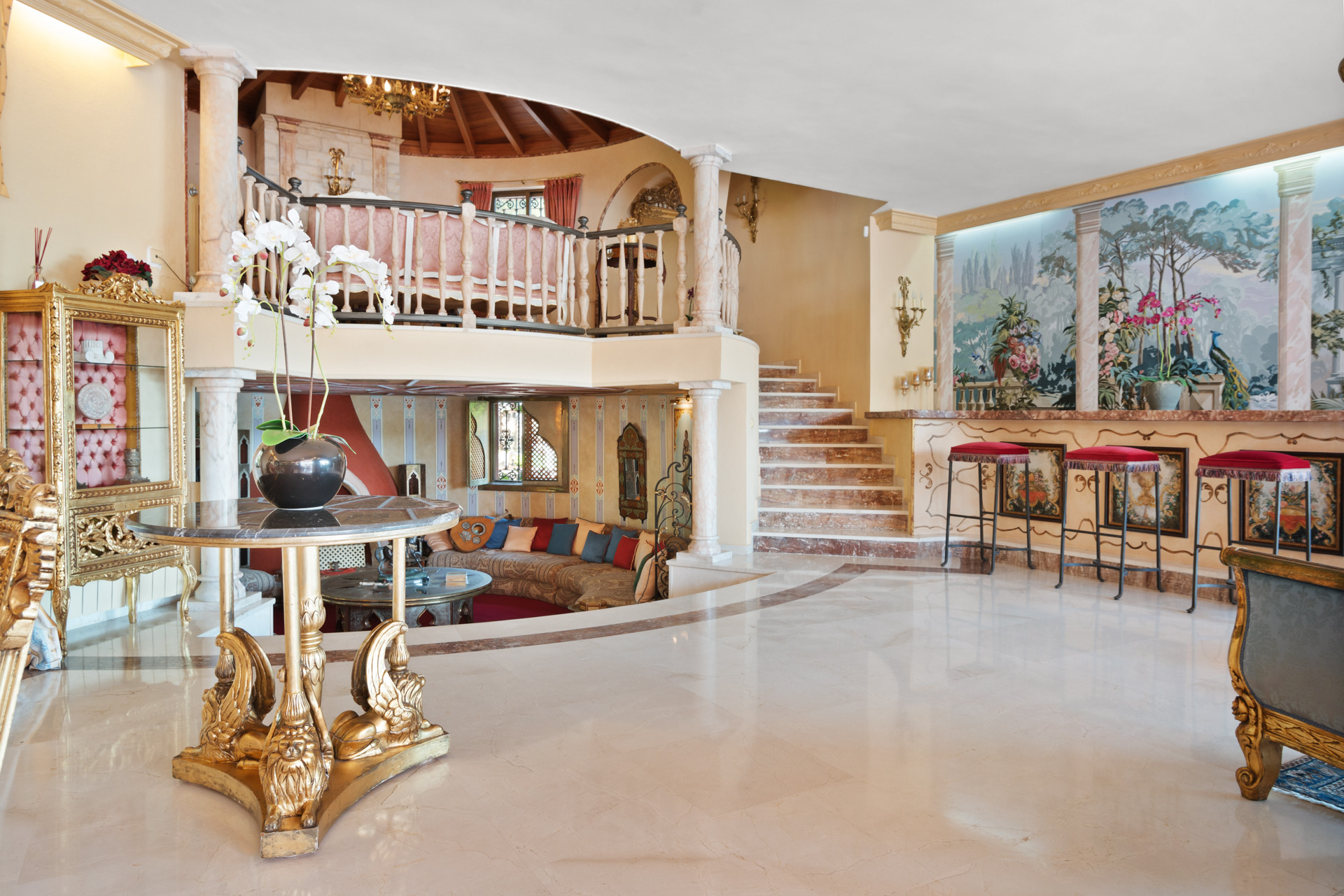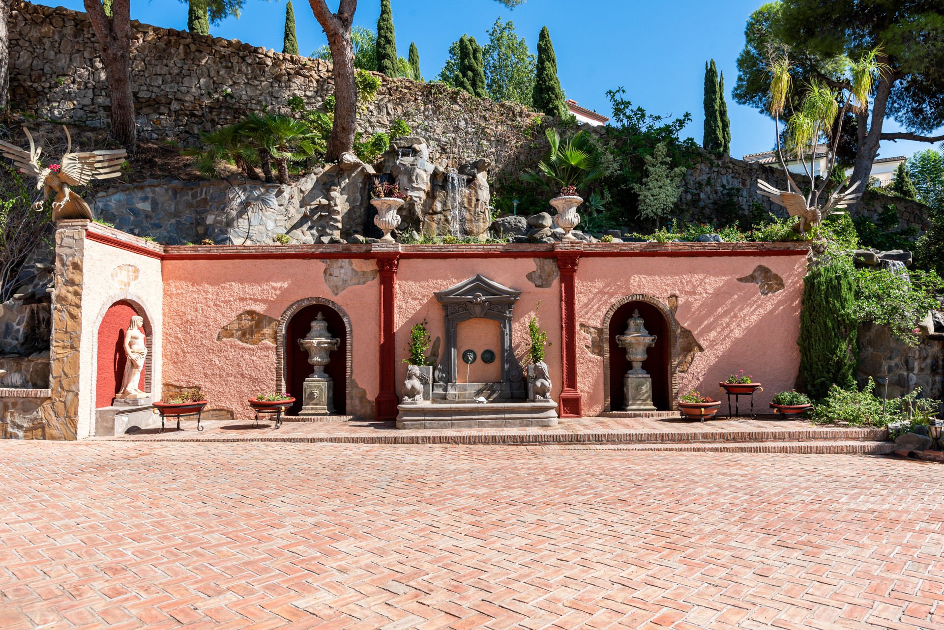As you approach this magnificent villa, you'll be welcomed by an awe-inspiring entrance, complete with a grand driveway adorned with elegant water features. The opulent style of the villa is evident from the very first glance, promising an unforgettable stay in an exclusive and distinctive setting.