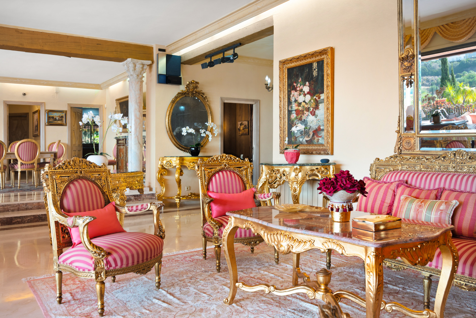 Throughout the meticulously landscaped gardens, you'll discover various seating areas, perfect for relaxation, al fresco dining, or simply taking in the beauty of the surroundings. As night falls, the garden comes alive with enchanting uplighting, creating a magical ambiance for unforgettable evenings.