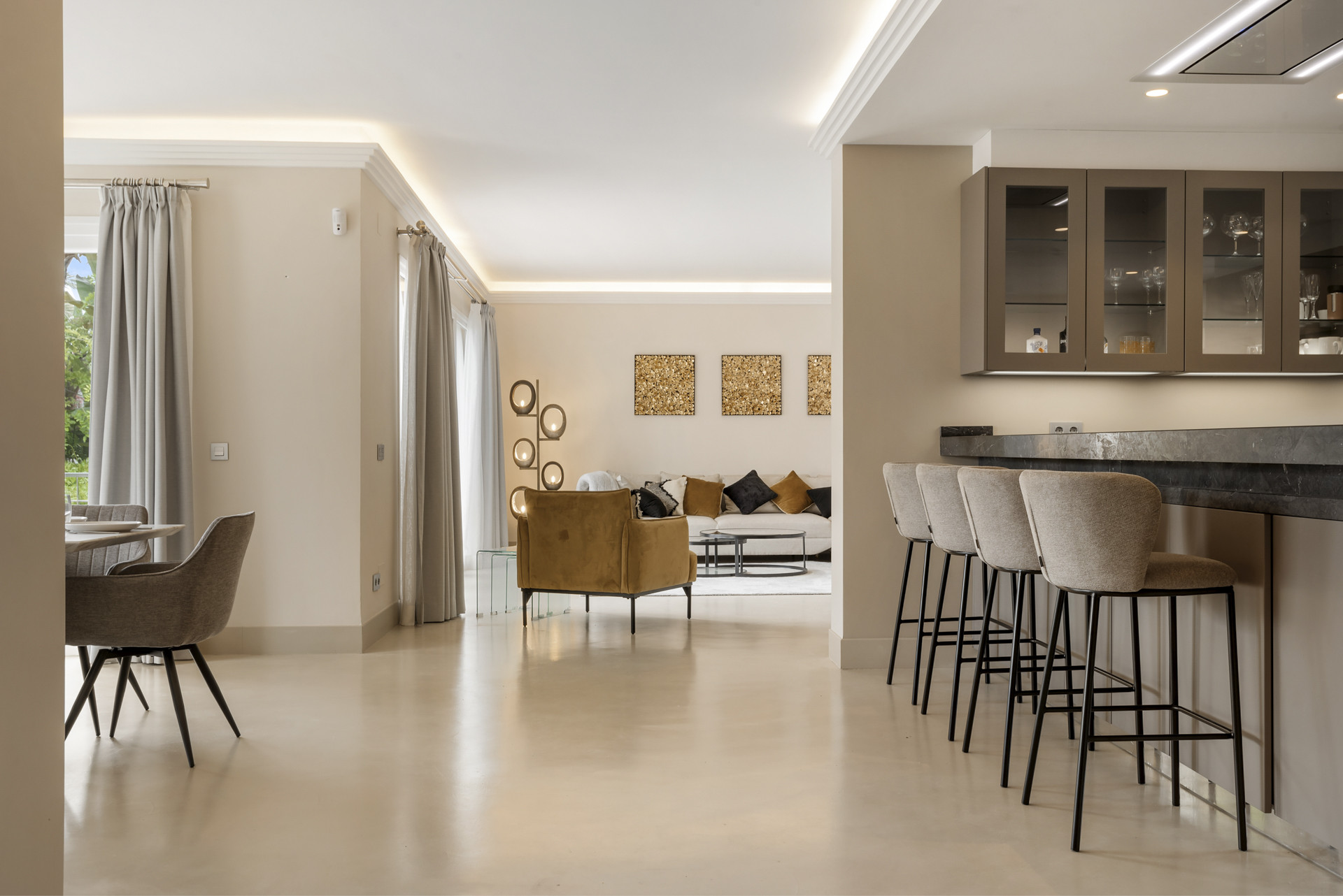 Outside, a private swimming pool and lush garden create your own peaceful oasis, just steps away from the vibrant life of Nueva Andalucía. Here, you’re just minutes from the area’s best restaurants, bars, nightclubs, golf courses, and of course, the golden beaches and the famous Puerto Banús marina.