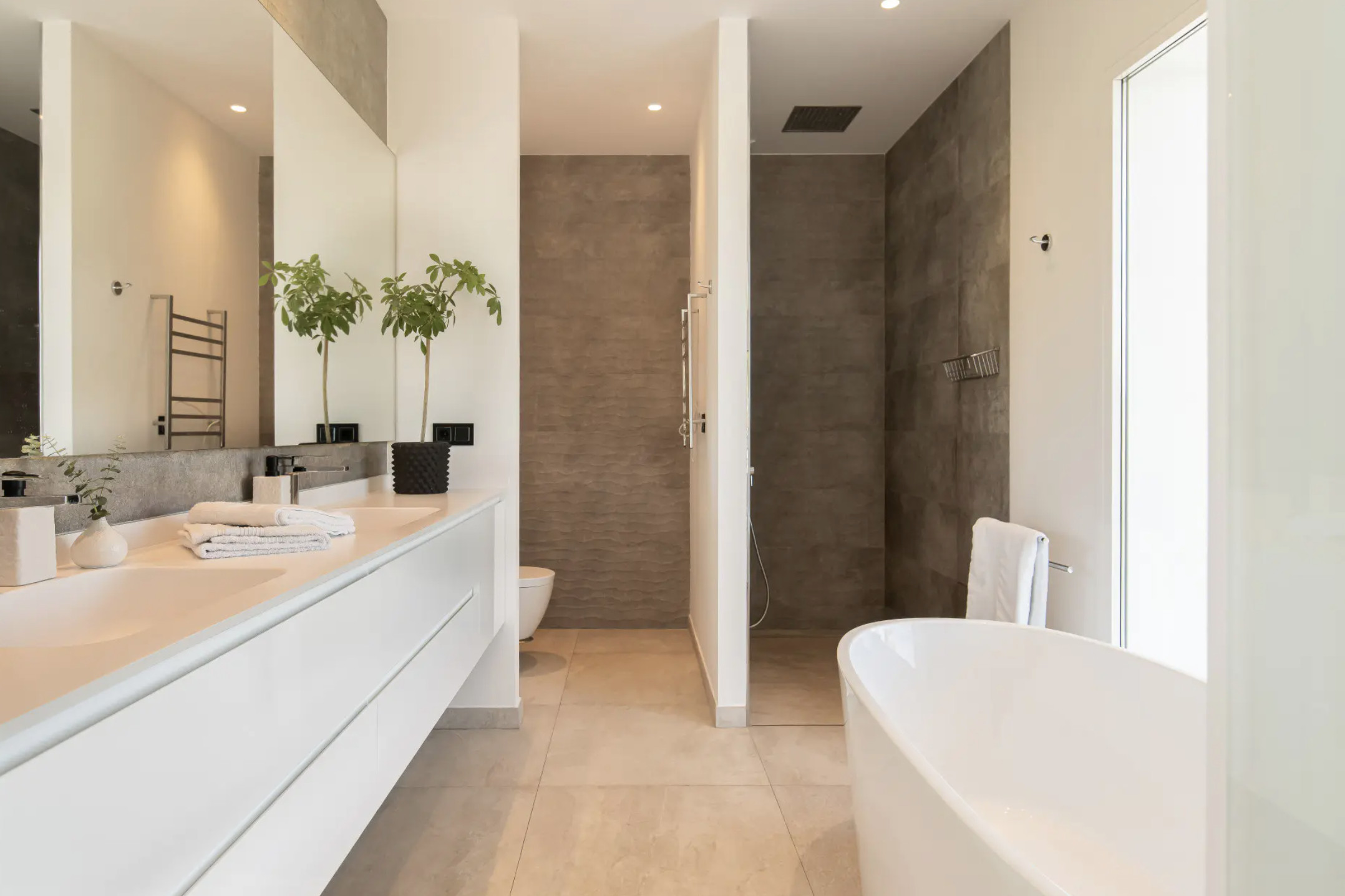 Inside, Villa Serenis impresses with its thoughtful layout and subtle luxury. Each bedroom is fitted with premium memory foam mattresses, a variety of pillow types—from supportive memory foam to softer alternatives—and cozy, elegant linens for a restful night’s sleep. The bathrooms throughout the home feature premium fittings, including modern walk-in showers, stylish tiling, and sleek, contemporary finishes that create a spa-like atmosphere. A separate guest toilet adds extra convenience for day-to-day use or when entertaining.