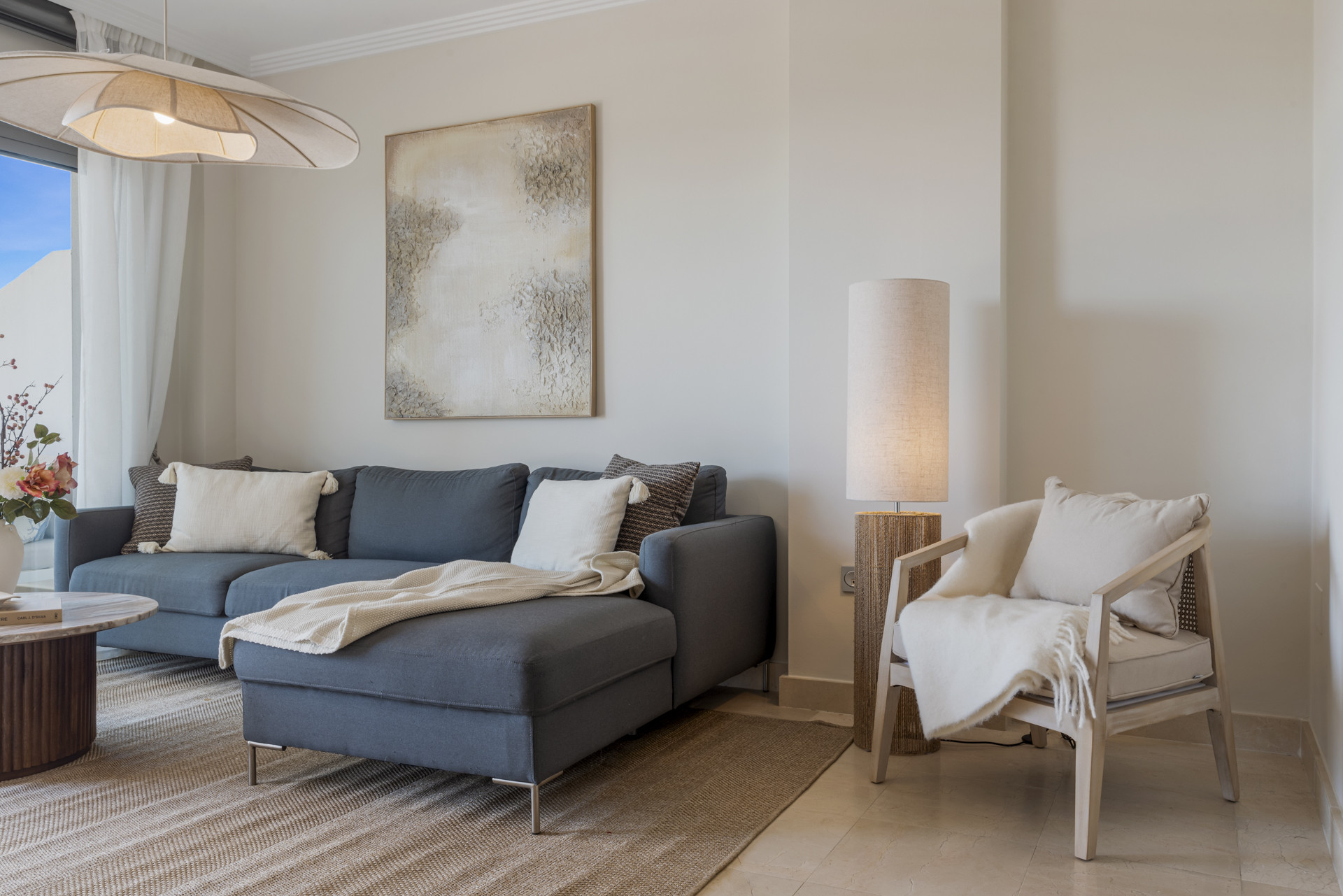 Den rymliga lägenheten är belägen på den nya gyllene milen mellan Estepona och Marbella i den välkända bostadsurbaniseringen Acosta Los Flamingos och mittemot det prestigefyllda hotellet Villa Padierna, Benahavis.