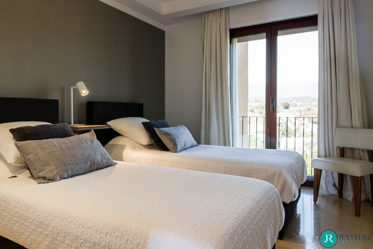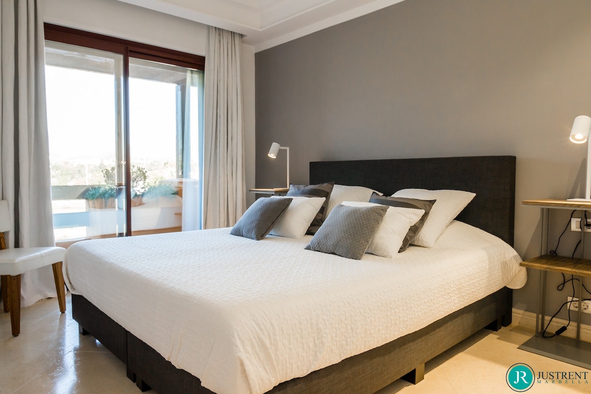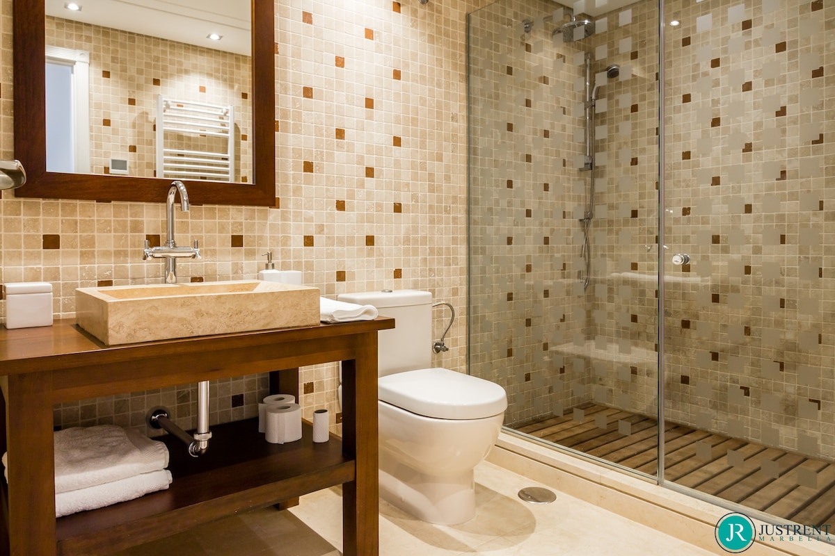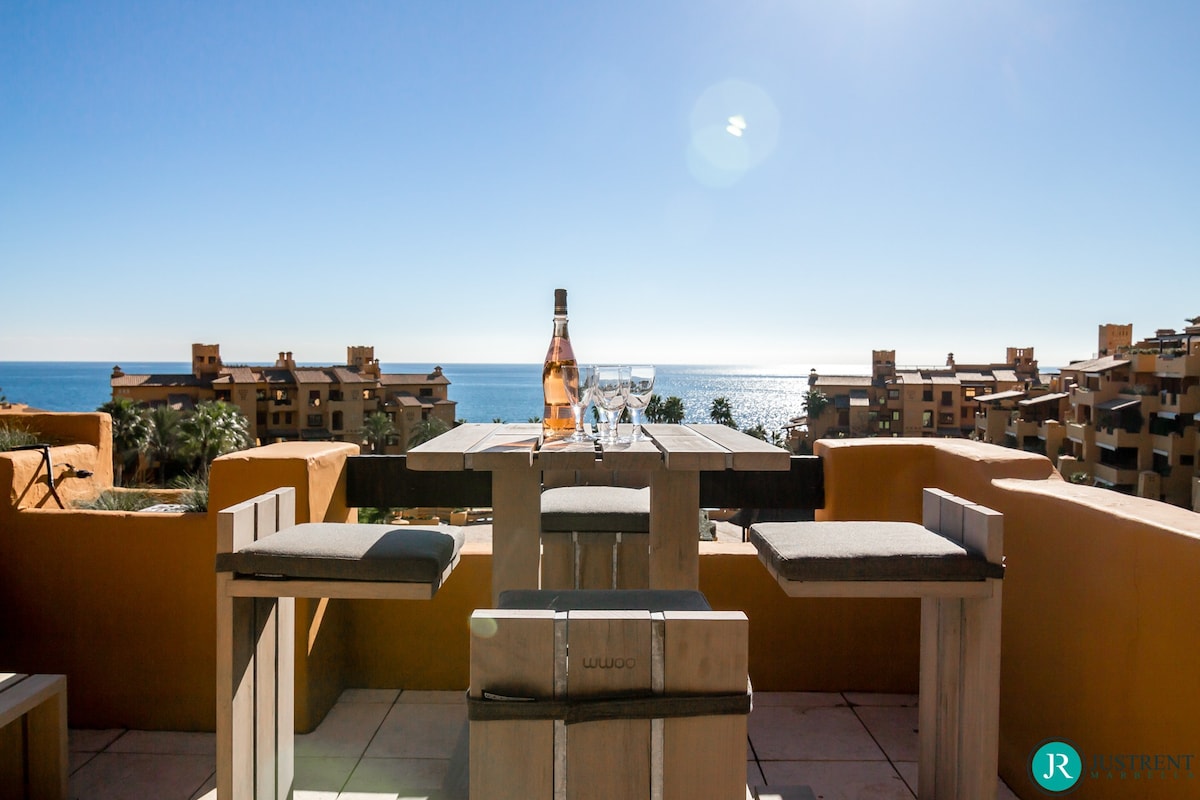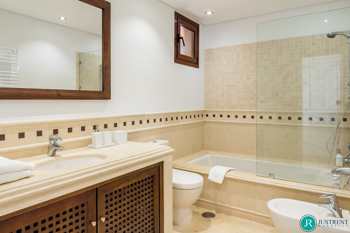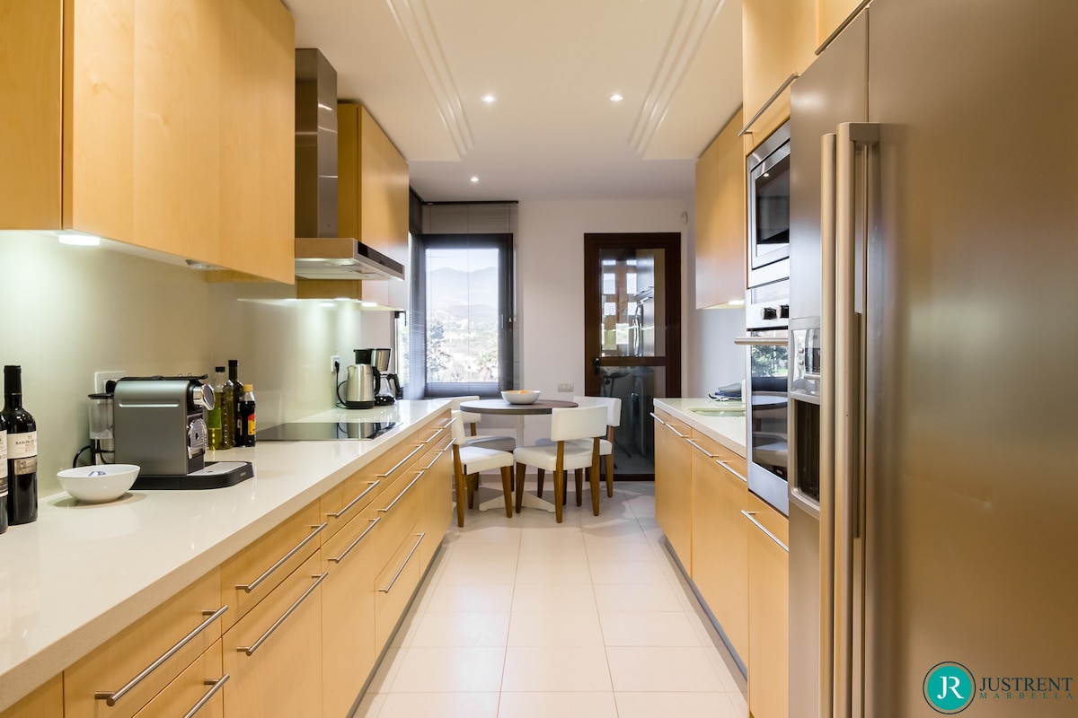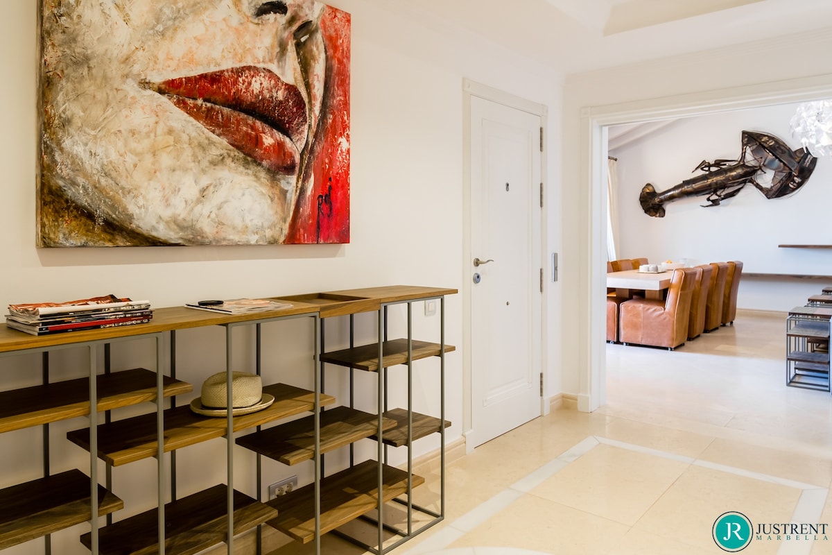 Den/det lägenhet i Estepona har 4 sovrum och en kapacitet för 8 personer. Boende av 249 m² fin och är modernt, ligger i strand, Den har utsikt över havet och bergen. Bostaden ligger 50 m sandstrand, 80 m flyplats, 300 m restaurang, 300 m from coffee shop, 1 km busstation, 2 km mataffär, 3 km from hospital, 5 km stad, 12 km golfbana, 59 km vattenpark, 80 km flyplats och den ligger i ett ett familjevänligt zon och bredvid havet.Boendet är utrustat med följande föremål: hiss, 117 m² terrass, tvättmaskin, torktumlare, grill, strykjärn, internet (Wifi), hårtork, balkong, gym / fitness , spa, elektrisk värme, luftkonditionering i hela huset, pool privat pool, uppvärmd pool kommunal pool, garage in på plats, 1 TV, satellit.Den/det oberoende kök, av vitroceramic, är utrustat med kyl, mikrovågsugn, ugn, frys, diskmaskin, tallrikar/bestick, köksredskap, kaffemaskin, brödrost, vattenkokare, juicemaskin och köksutrustning