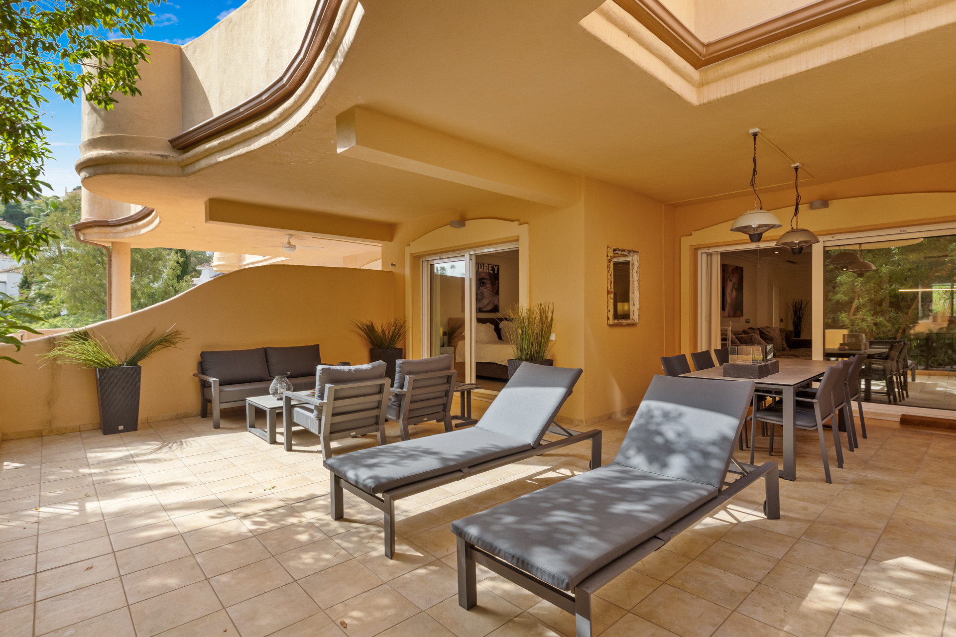 Casa Primavera erbjuder fantastisk utsikt över komplexets vackra trädgårdar och pool, med avlägsna glimtar av Medelhavet som ökar dess charm. Terrassen är en lugn plats med uteservering, perfekt för att njuta av soluppgångar med ett morgonkaffe eller titta på solnedgången med en älskad.