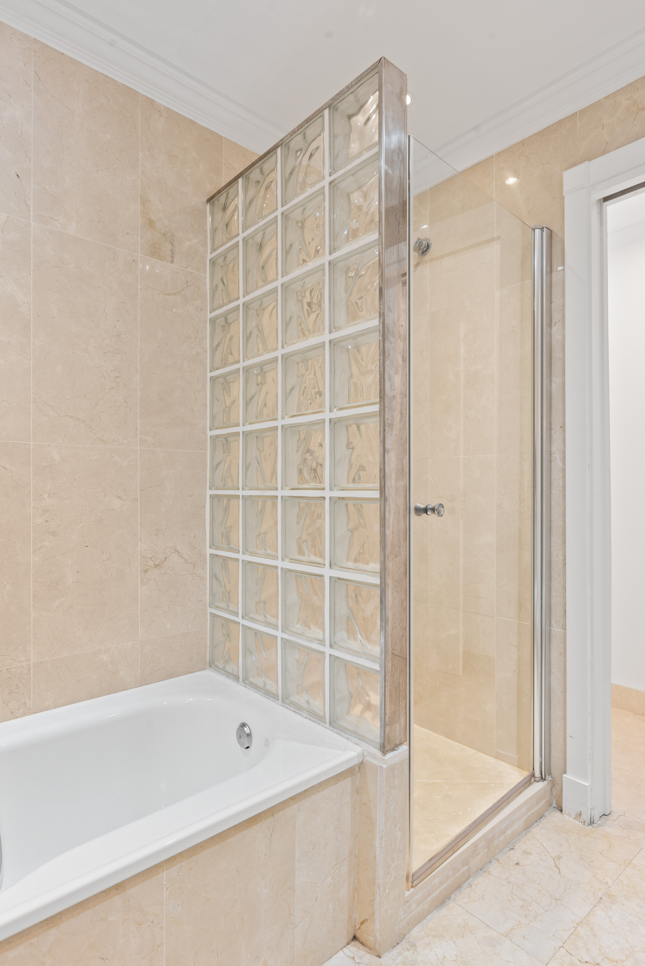 Det finns två ljusa och rymliga sovrum. Huvudsovrummet har ett eget badrum med dusch och badkar och har glasdörrar som leder ut till terrassen. Det andra sovrummet har en dubbelsäng, mycket stil och gott om garderobsutrymme och ett badrum precis utanför dörren.