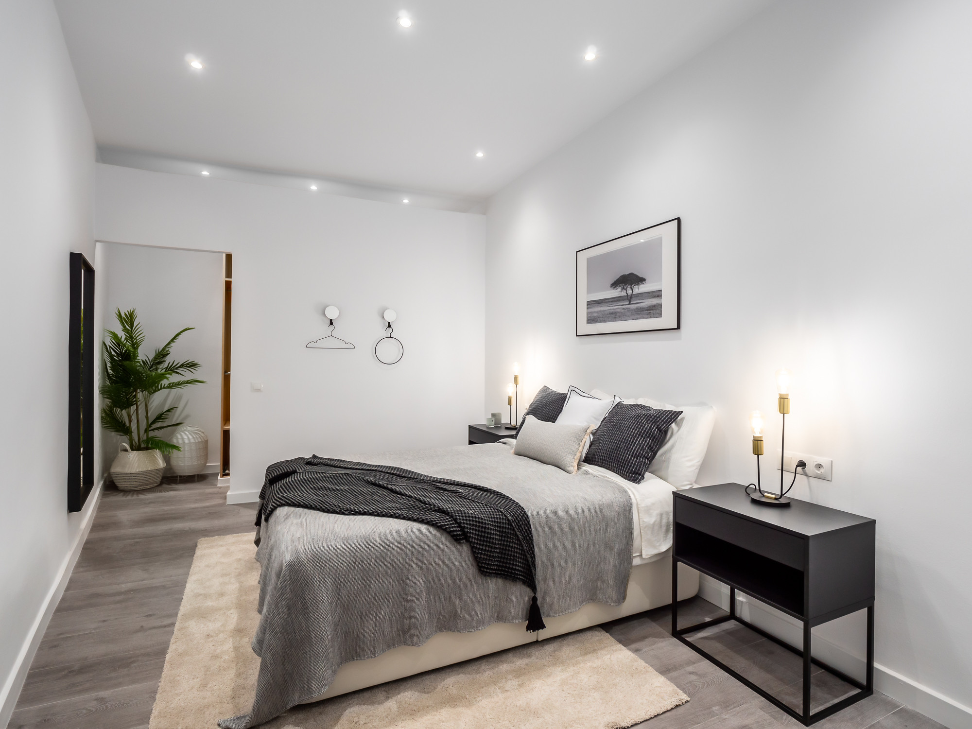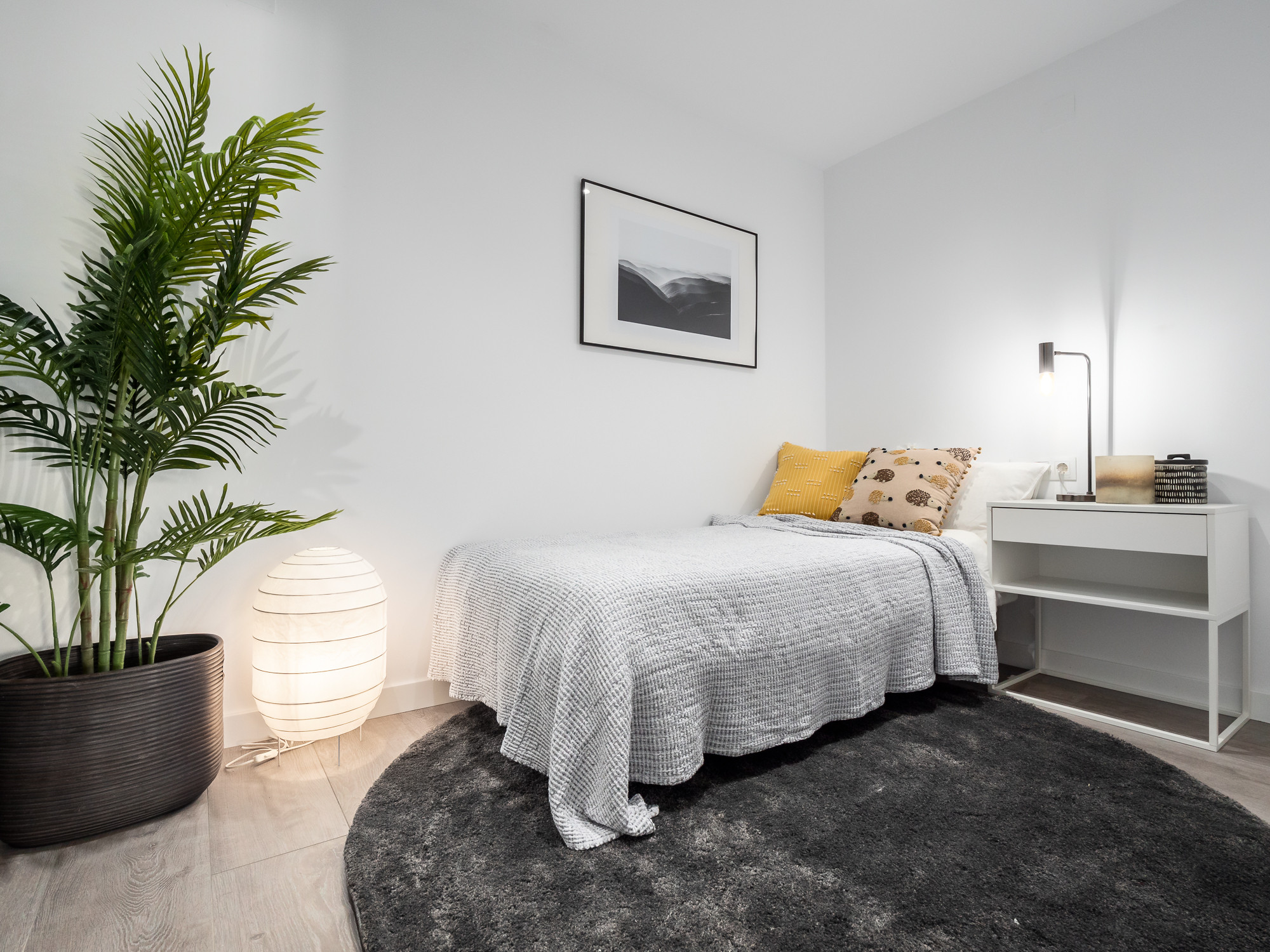 När du kliver in i lägenheten möts du av en atmosfär av lugnande komfort. Lägenheten har en rymlig layout med fräscha färger, möbler och inredning, vilket skapar en elegant men inbjudande atmosfär.