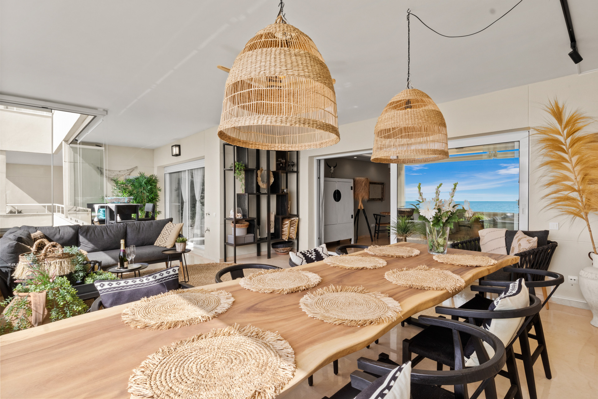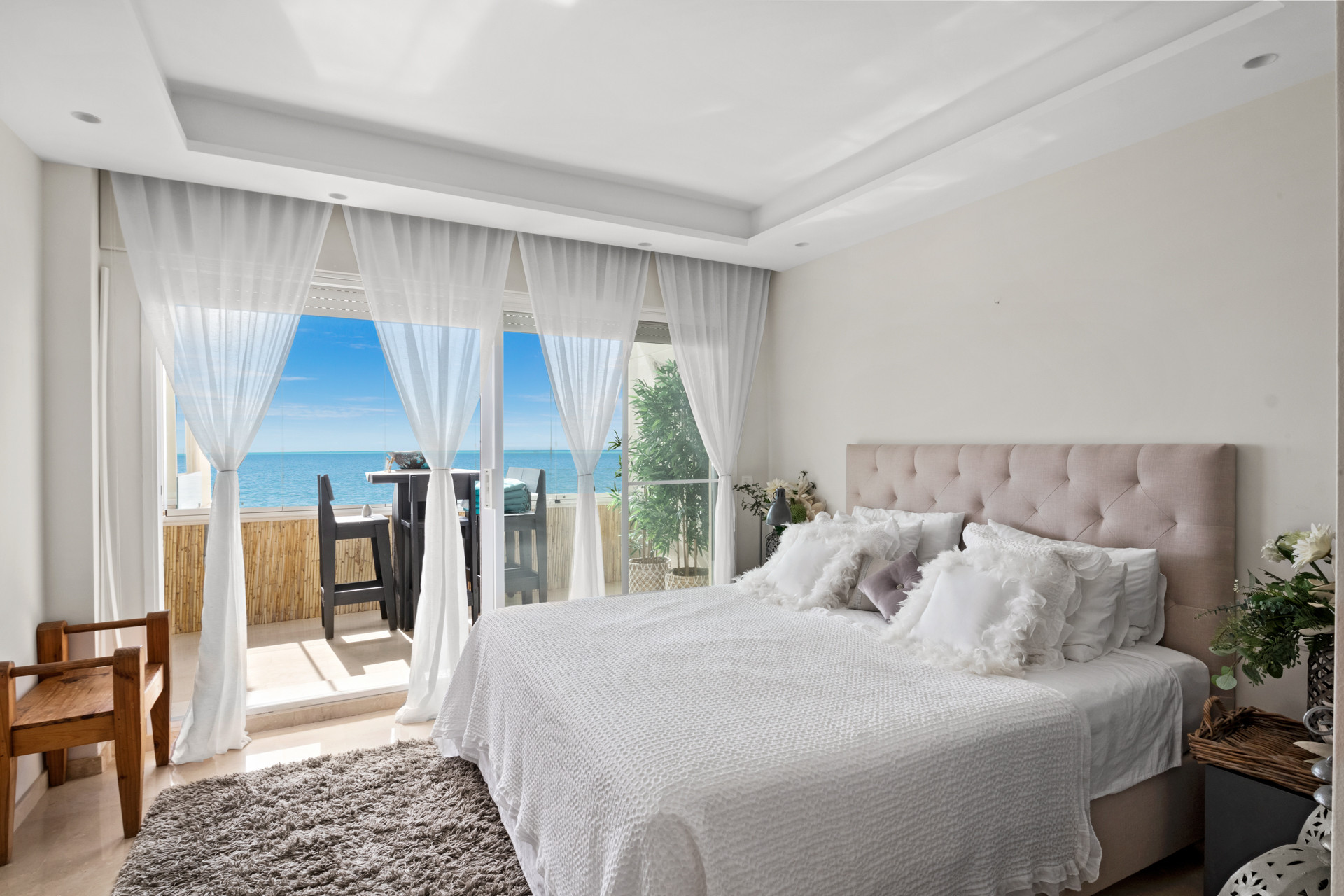 Den/det lägenhet i Marbella har 3 sovrum och en kapacitet för 6 personer. Boende av 121 m² snyggt möblerad och är modernt, ligger i strand, Den har utsikt över havet och trädgården. Bostaden ligger 0 m sandstrand, 0 m restaurang, 0 m from coffee shop, 350 m busstation, 3 km golfbana, 3 km mataffär, 6 km stad, 9 km from hospital, 16 km vattenpark, 40 km flyplats, 40 km flyplats och den ligger i ett ett familjevänligt zon och i en förort.Boendet är utrustat med följande föremål: hiss, 46 m² terrass, tvättmaskin, strykjärn, internet (Wifi), hårtork, balkong, tennisbana grus, gym / fitness , centralvärme, luftkonditionering, pool kommunal pool, utomhus parkeringsplats in på plats, 2 TV, satellit.Den/det oberoende kök, av induktion, är utrustat med kyl, mikrovågsugn, ugn, frys, diskmaskin, tallrikar/bestick, köksredskap, kaffemaskin, brödrost och köksutrustning