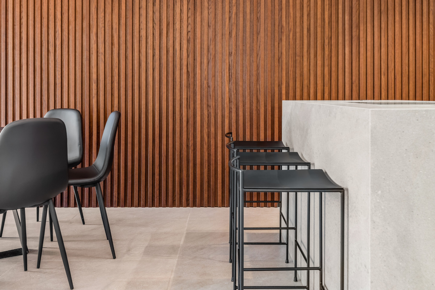 Boarean har en matbord, soffa och Smart-TV. De glasade skjutdörrarna leder till terrassen på 40m2 – detta är det perfekta utrymmet för utomhusmatlagning samtidigt som man njuter av de fantastiska vyerna. Det finns ett matbord för 6 personer, ett avkopplingsområde och en gasolgrill.