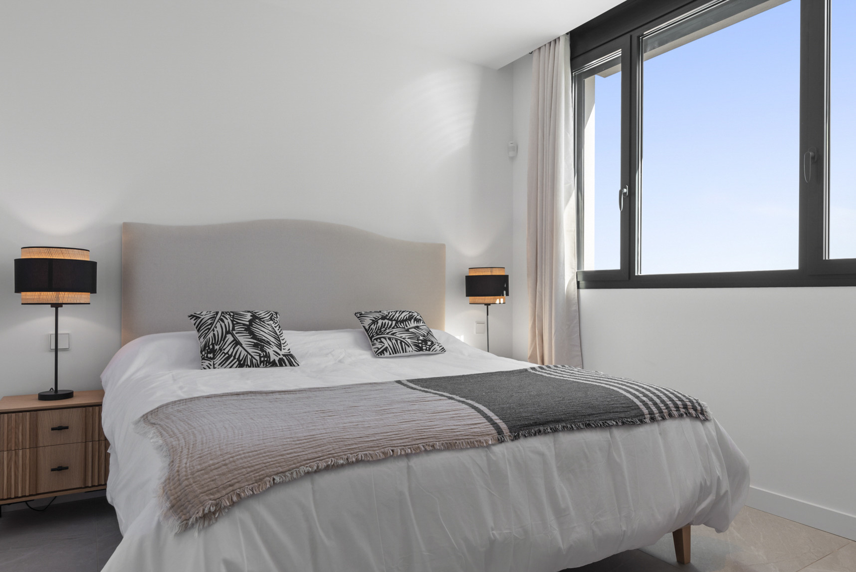 Lägenheten har 2 sovrum och 2 badrum. Det stora sovrummet går ut på balkongen och låter dig praktiskt taget vakna med utsikt över Medelhavet. Det andra sovrummet är mer designat för barnen med en våningssäng med en utdragbar säng och en extra enkelsäng.