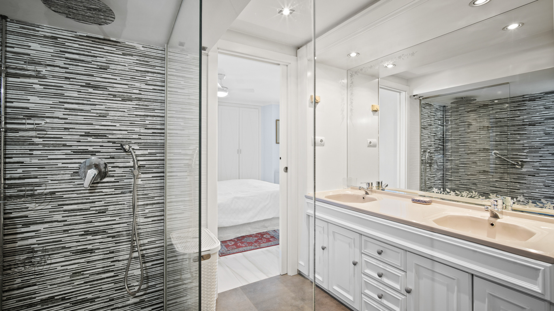 Lägenheten har 2 sovrum och 2 badrum. Det stora sovrummet går ut på balkongen och låter dig praktiskt taget vakna med utsikt över Medelhavet. Det andra sovrummet är mer designat för barnen med en våningssäng med en utdragbar säng och en extra enkelsäng.