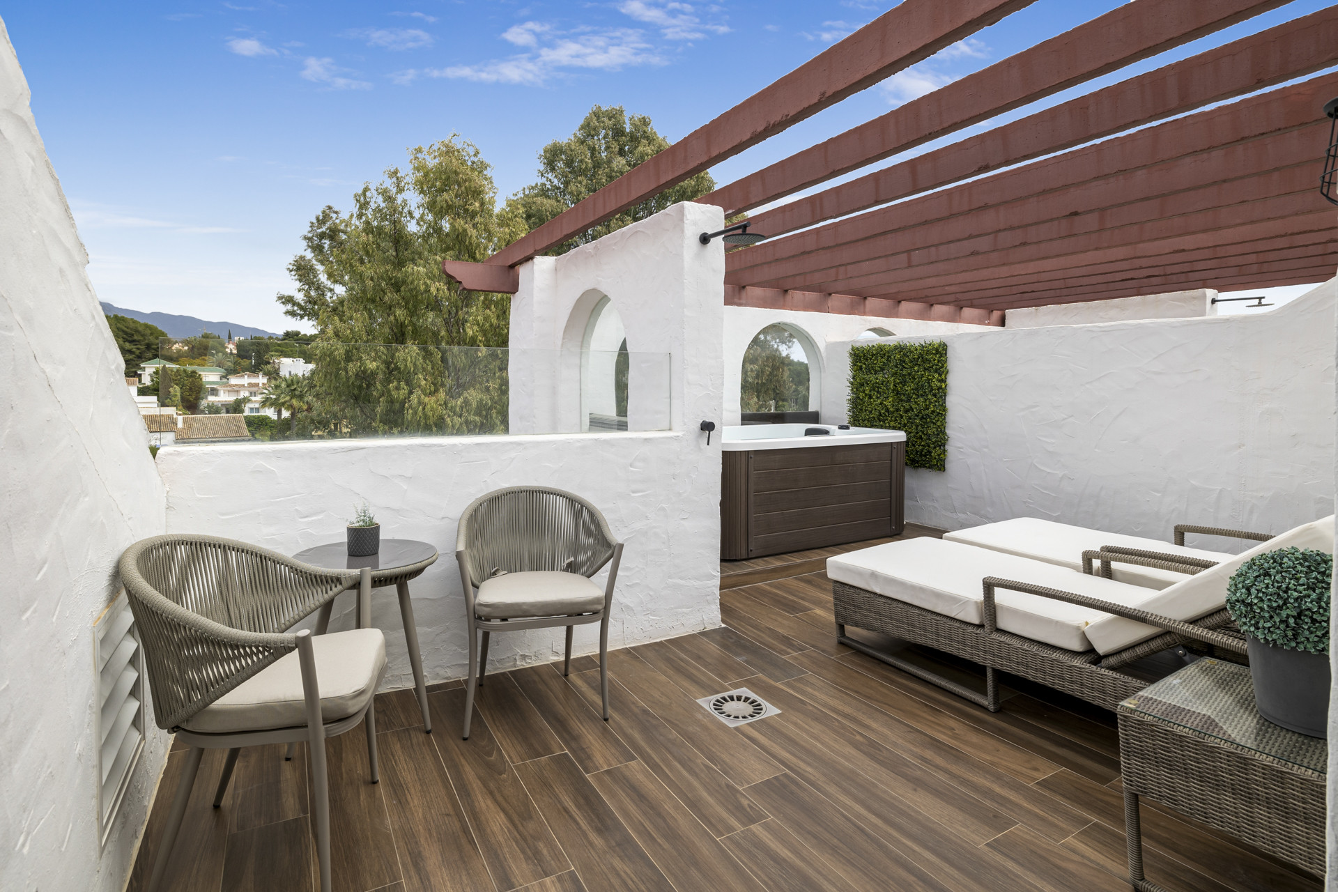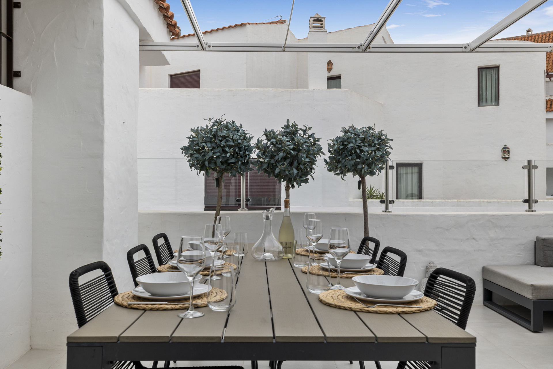 Matbutiker, apotek, butiker, restauranger och barer finns alla inom 2 minuters promenad. Det spännande och exklusiva området Puerto Banús ligger ungefär 10 minuters promenad bort där du kan njuta av designerbutiker, ett fantastiskt utbud av restauranger och en marina full av lyxbåtar. Det finns också sandstränder med parasoller och solstolar att hyra.