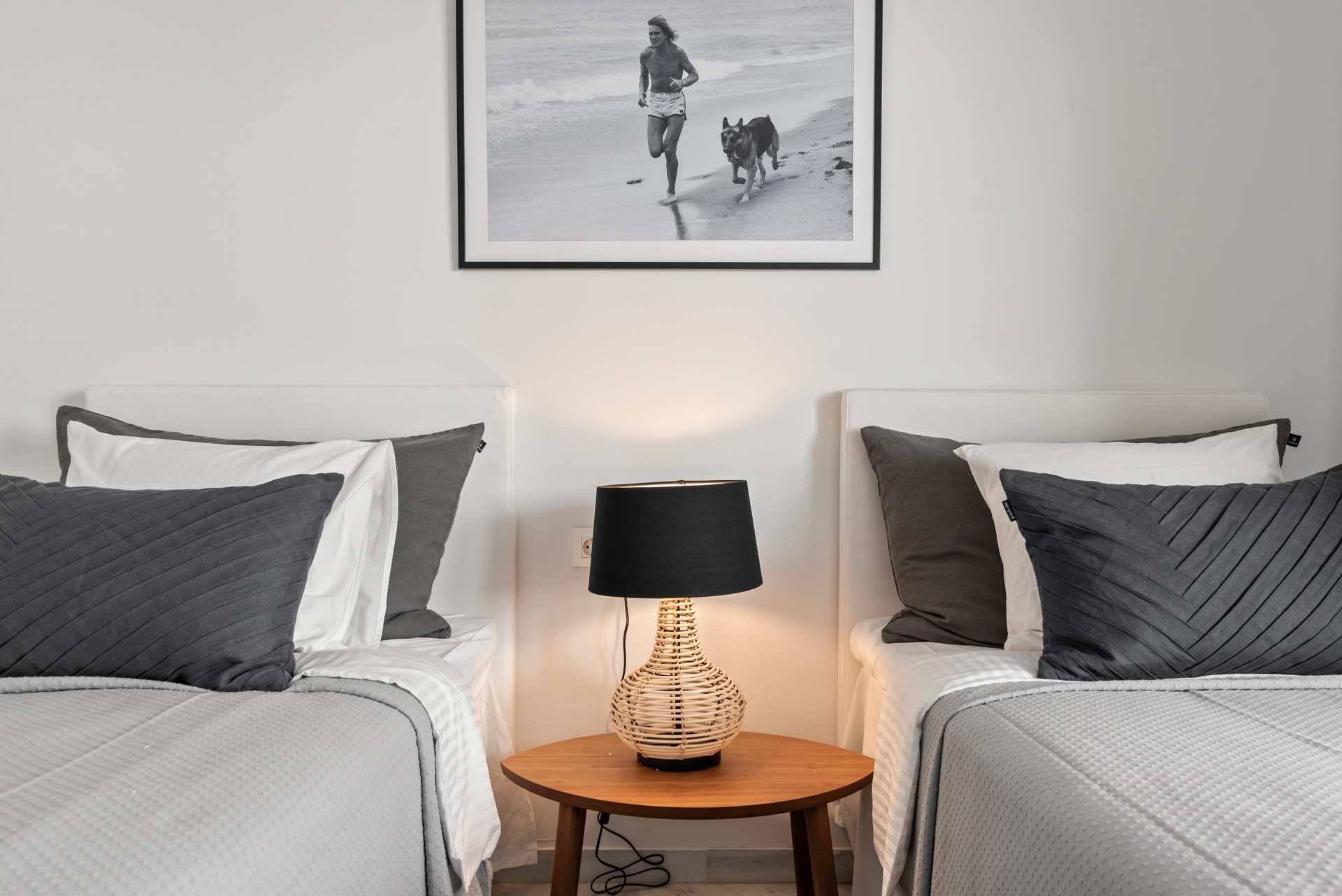Takvåningen har tre rymliga sovrum och tre eleganta badrum, vilket erbjuder en ljus och inbjudande boendemiljö. Designad med både avkoppling och underhållning i åtanke, inkluderar hemmet ett fullt utrustat kök, stilfulla utomhusloungeytor, en grillplats och ett imponerande privat gymrum på taket - perfekt för dem som vill hålla sig aktiva medan de njuter av utsikten. De väst- och söderländda terrasserna erbjuder gott om plats för avkoppling eller utomhusmåltider, medan högkvalitativa detaljer och genomtänkta detaljer förstärker upplevelsen av lyxigt boende. På begäran kan vi tillhandahålla två extra enkelsängar.
