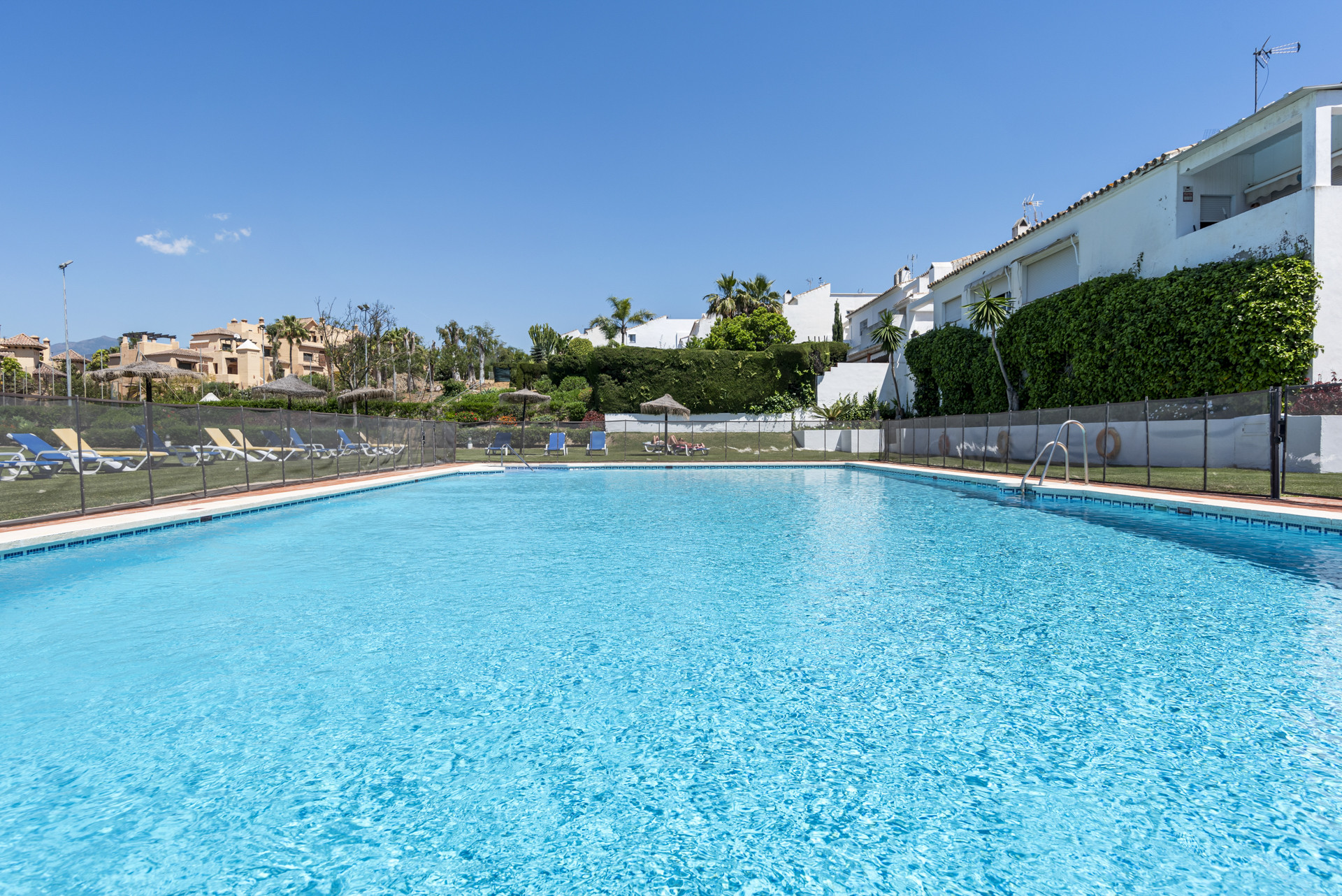 Boende i samhället har tillgång till en gemensam swimmingpool, vilket ger en uppfriskande touch till den medelhavska livsstilen. Läget är suveränt—bara 10 minuters bilresa till Puerto Banús glamour, 5 minuter till de gyllene stränderna och närliggande San Pedro, och endast 10 minuter till den livliga staden Estepona. Oavsett om du söker ett stilfullt semesterhem eller en lugn bas nära all aktivitet, levererar detta radhus på alla plan.