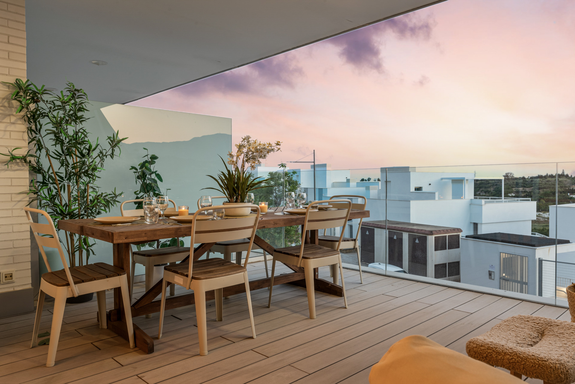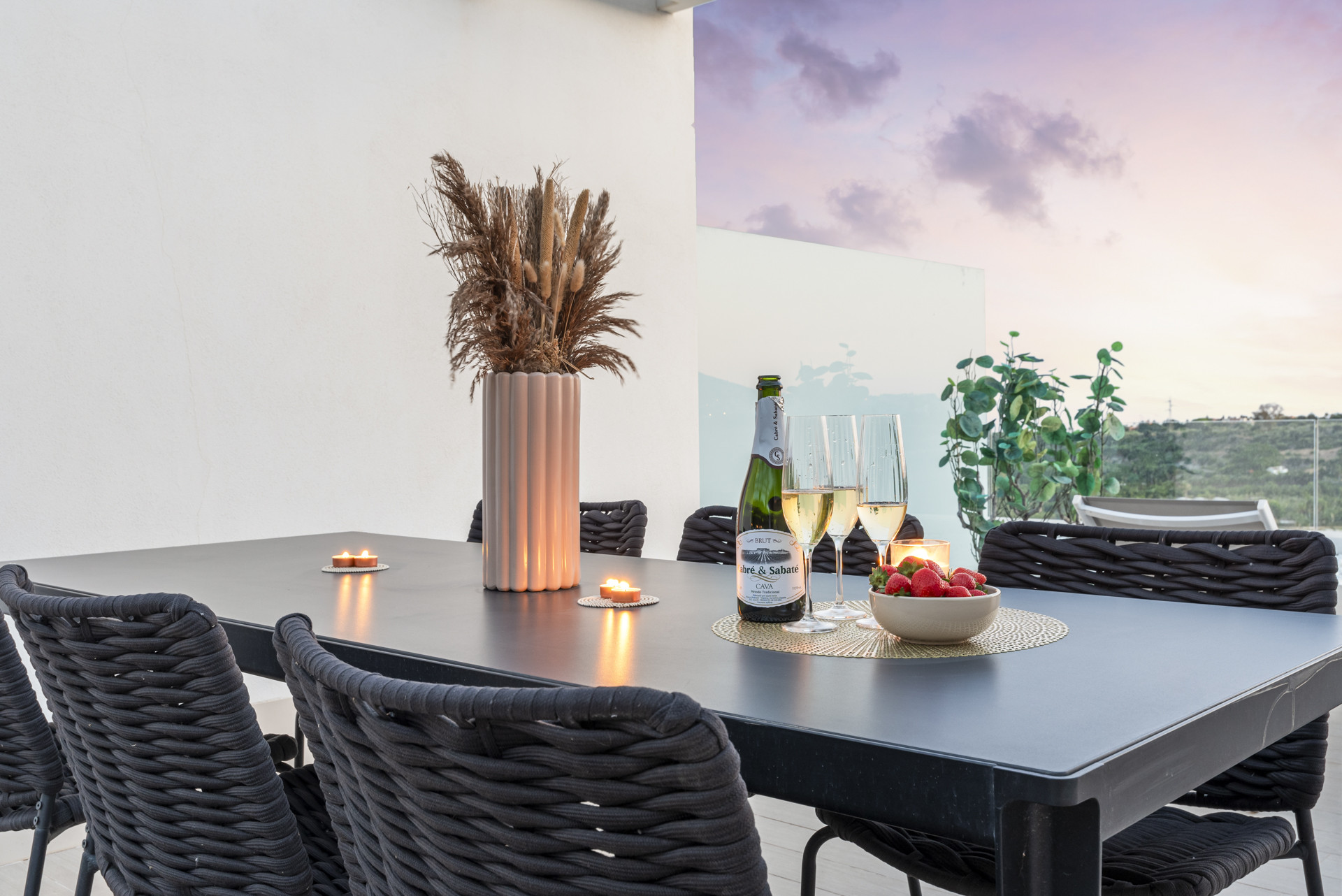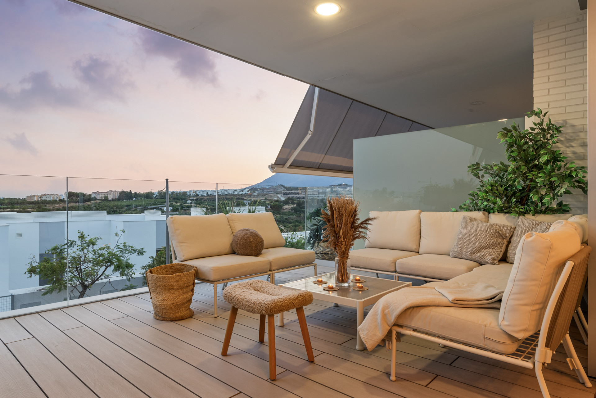 En av de mest framträdande egenskaperna hos fastigheten är den västvända takterrassen, designad för utomhusboende när det är som bäst. Här hittar du solstolar för att sola sig i det sena eftermiddagssolskenet, ett elegant loungeområde för kvällscocktails och en grill för matlagning utomhus med havsutsikt som bakgrund. Detta upphöjda utrymme erbjuder en verklig fristad ovanför allt, där man fångar både lugn och hisnande kustlandskap.