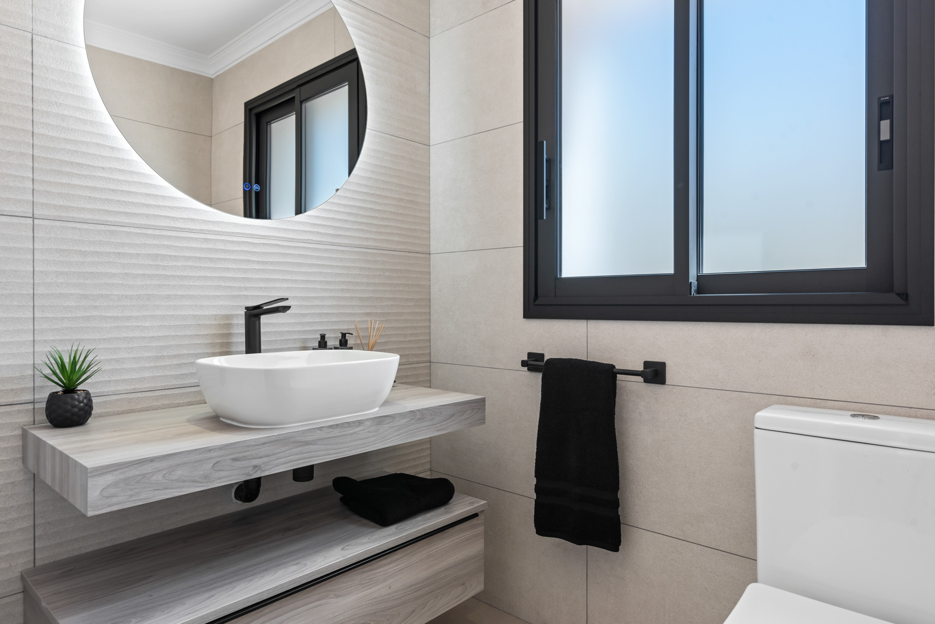 Villan skryter med 4 vackert designade sovrum, var och en med hisnande havsutsikt. Master bedroom och ett andra sovrum på nedre plan har privata badrum, medan de två återstående sovrummen på övervåningen delar ett tredje badrum. Sovrummet på nedre plan, med sin direktåtkomst till terrassen, erbjuder en perfekt fristad för gäster, vilket gör det möjligt för dem att kliva ut och njuta av morgonbrisen eller en kväll vid poolen.