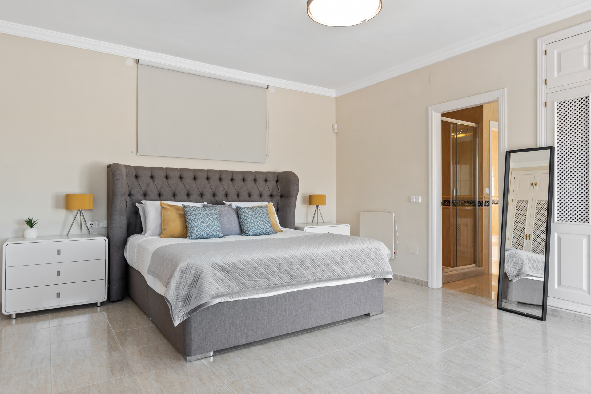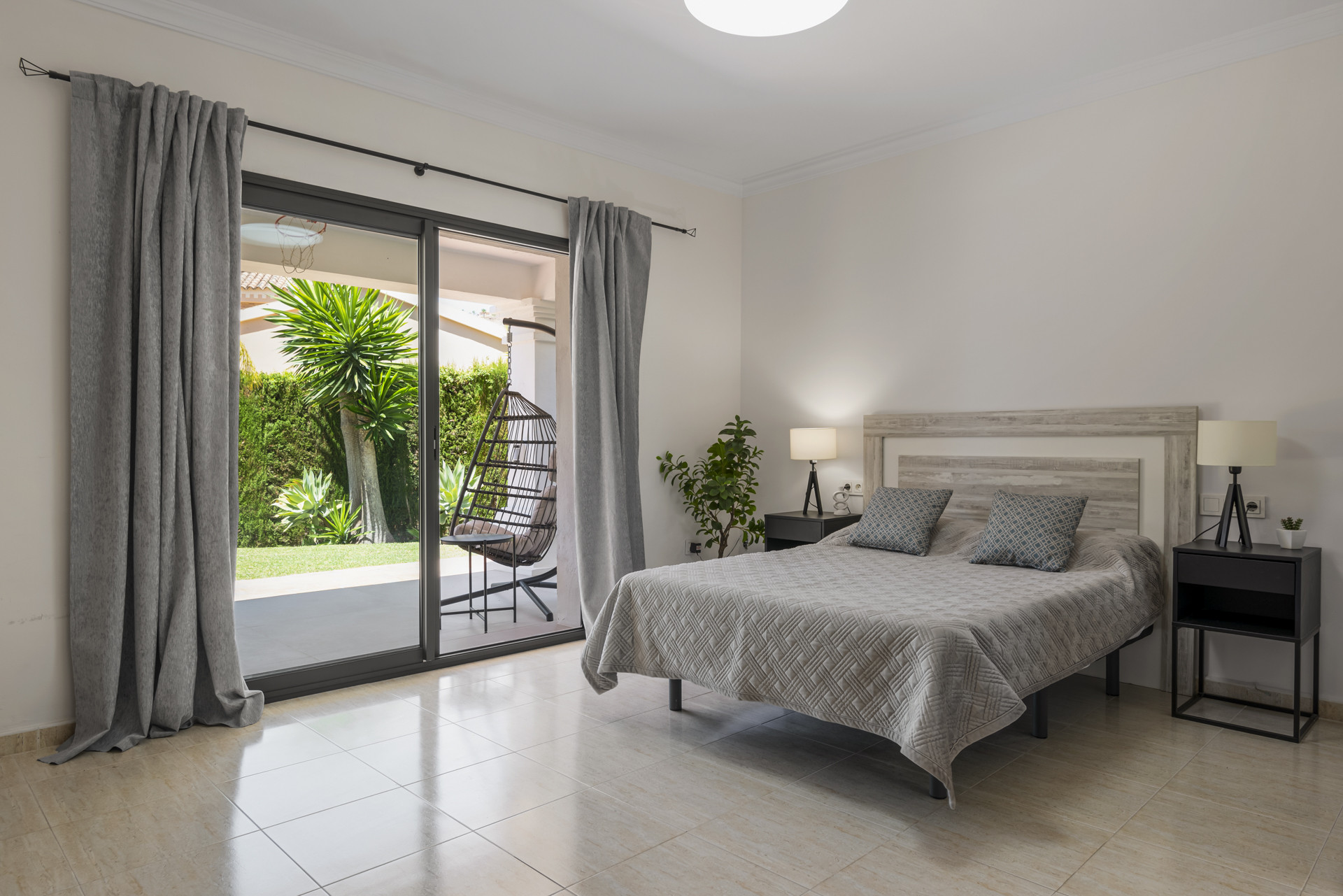 Villa La Alquería har fyra vackert utrustade sovrum. Det första, beläget på bottenvåningen, inkluderar en queensize-säng, ett eget badrum och direkt tillgång till poolterrassen. På övervåningen erbjuder de andra och tredje sovrummen—ett dubbelrum (160 cm) och ett enkelrum—utsikt över golfbanan och delar ett rymligt badrum med badkar och dubbla handfat. Den imponerande master-sviten har en kingsize-säng, ett stort eget badrum med badkar och separat dusch, en TV och en privat terrass med panoramautsikt.