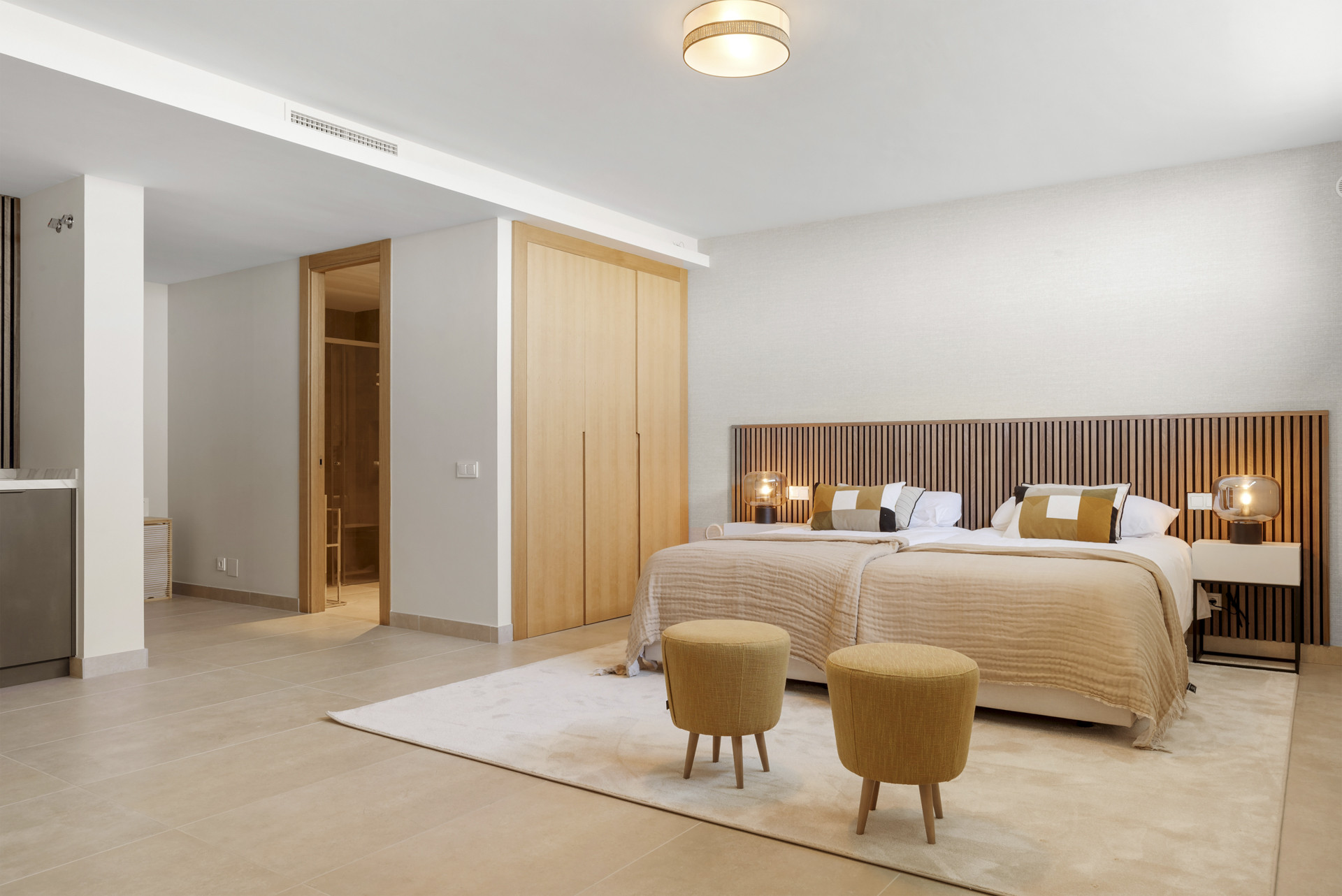 Villa La Alquería har fyra vackert utrustade sovrum. Det första, beläget på bottenvåningen, inkluderar en queensize-säng, ett eget badrum och direkt tillgång till poolterrassen. På övervåningen erbjuder de andra och tredje sovrummen—ett dubbelrum (160 cm) och ett enkelrum—utsikt över golfbanan och delar ett rymligt badrum med badkar och dubbla handfat. Den imponerande master-sviten har en kingsize-säng, ett stort eget badrum med badkar och separat dusch, en TV och en privat terrass med panoramautsikt.