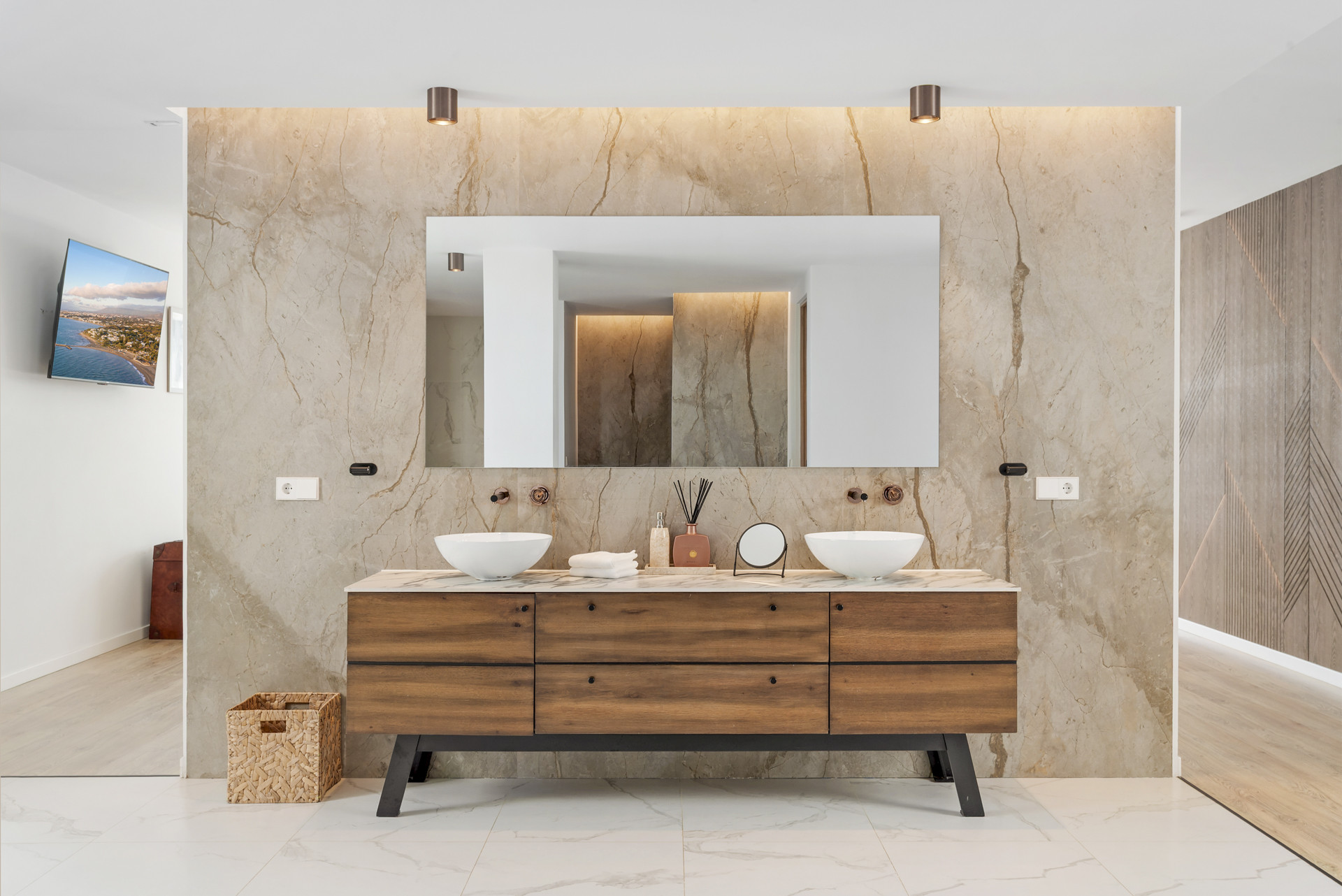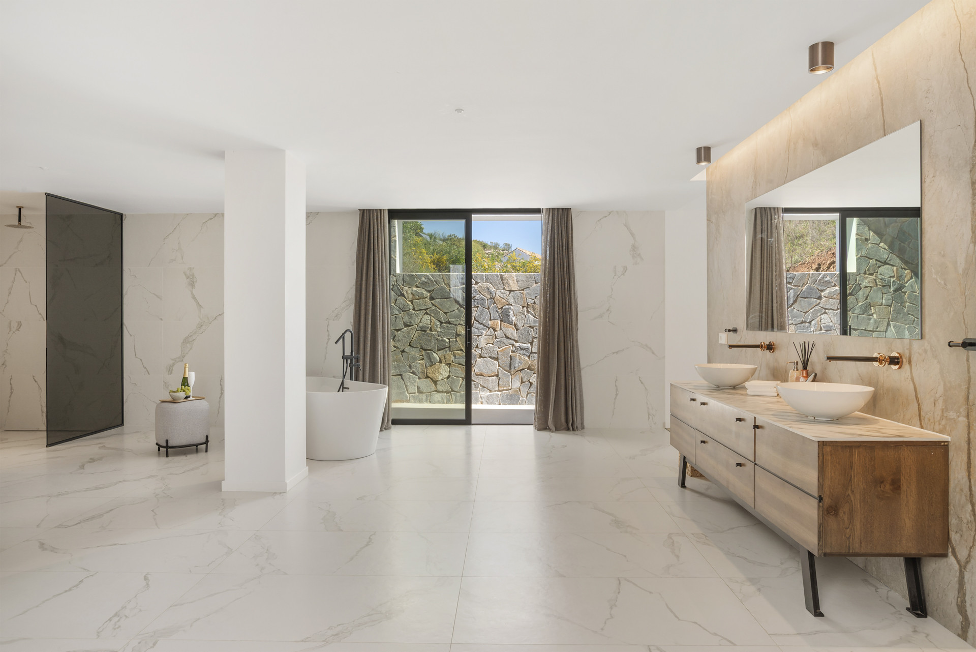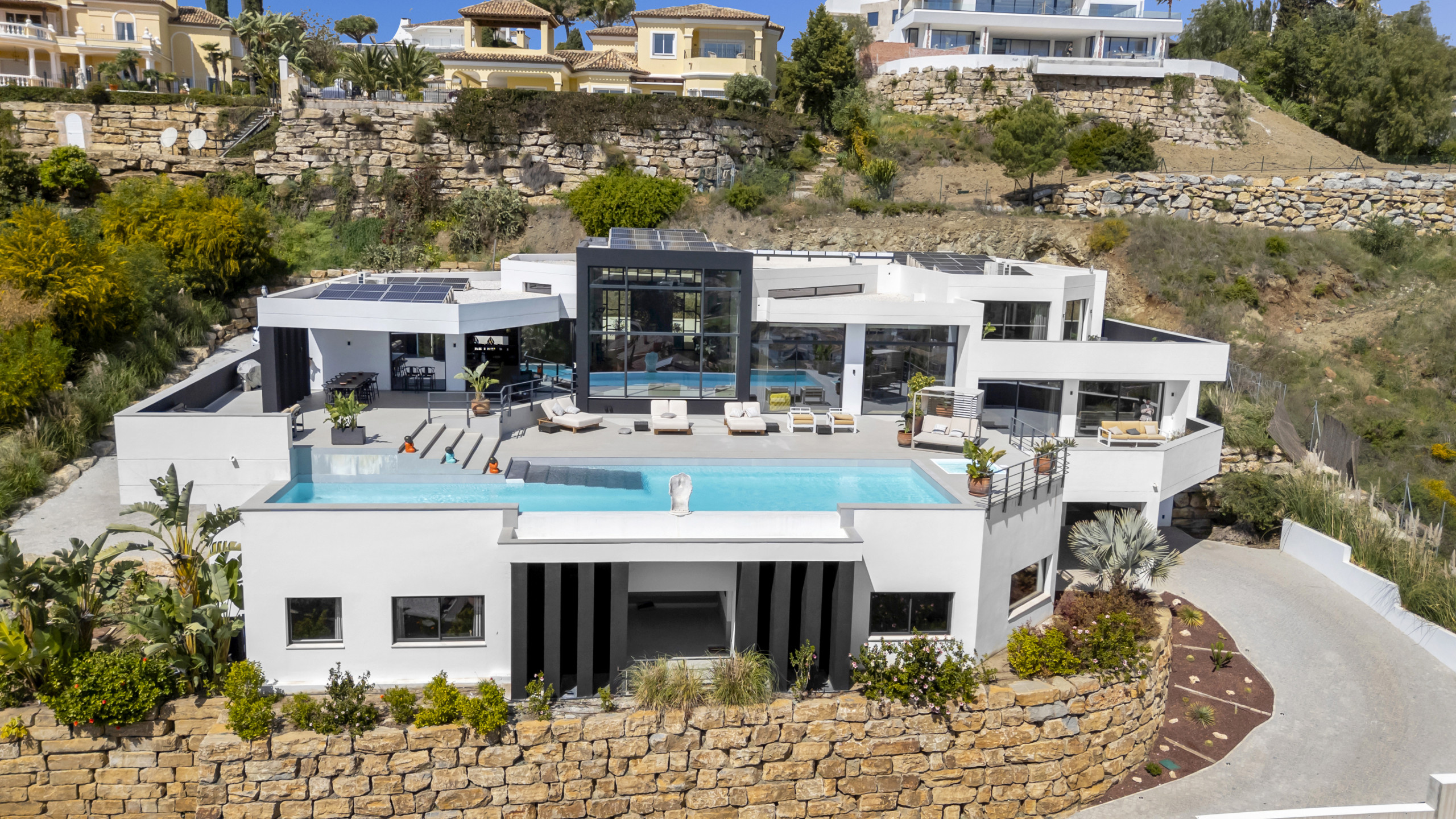 Boendet är utrustat med följande föremål: inhägnad tomt, terrass, tvättmaskin, torktumlare, grill, Öppen spis, strykjärn, kassaskåp, internet (Wifi), hårtork, balkong, gym / fitness , alarm, spa, centralvärme, luftkonditionering, pool privat pool, garage in på plats, 2 TV.
