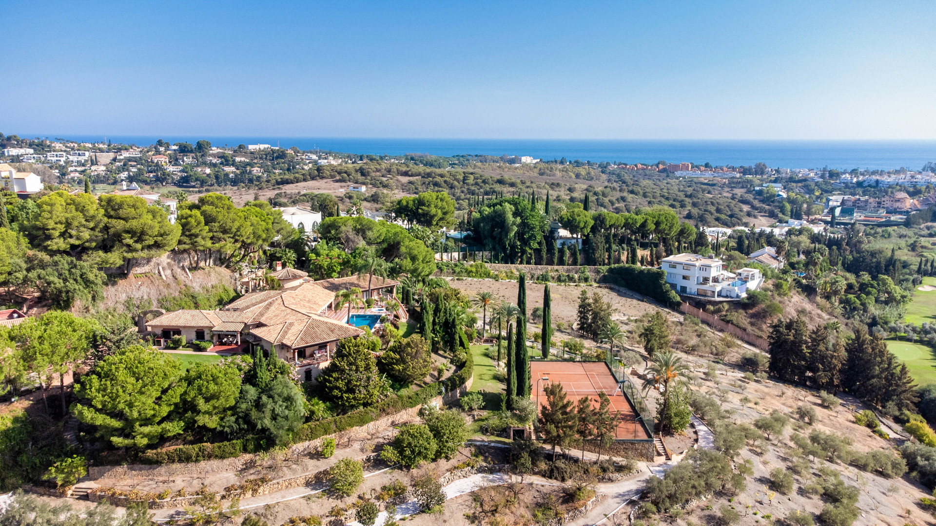 Boendet är utrustat med följande föremål: trädgård, trädgårdsmöbler, inhägnad tomt, 50 m² terrass, tvättmaskin, torktumlare, grill, strykjärn, internet (Wifi), hårtork, balkong, tennisbana, gym / fitness , alarm, bastu, jacuzzi, spa, elektrisk värme, luftkonditionering, pool privat pool, garage och parkering in på plats, 5 TV.
