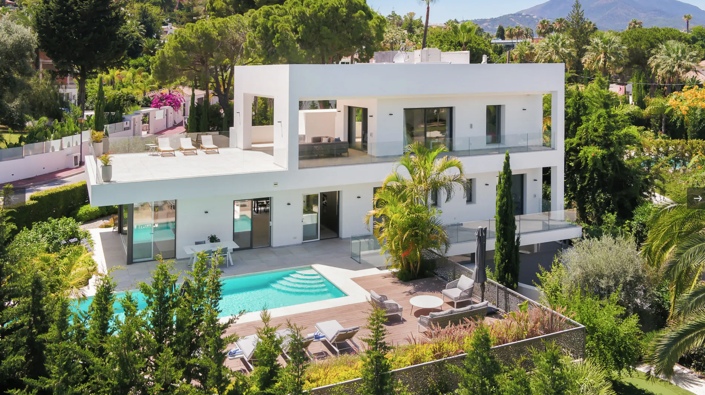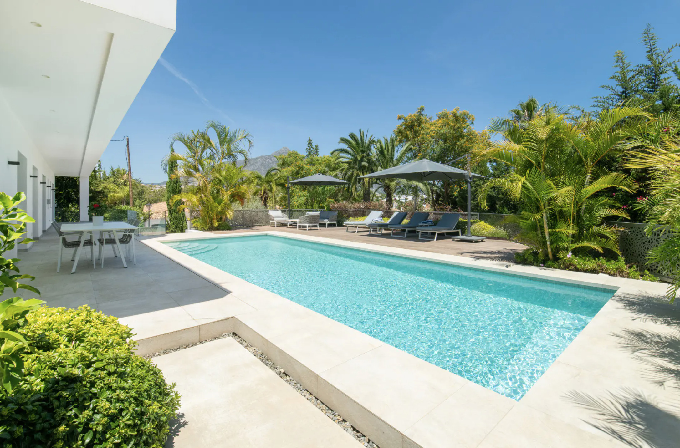 Inbäddad i Nueva Andalucías lugna golfdalens omgivningar ligger Villa Serenis, ett vackert designat 5-sovrum, 4-badrum reträtthem med ytterligare en gästtoalett, beläget bara några ögonblick från Puerto Banús glamour. Med panoramautsikt över La Concha och badad i morgonsolsljus tack vare sin östliga orientering, förenar villan rena arkitektoniska linjer med varma, inbjudande interiörer - perfekt för familjer eller grupper som söker en privat fristad utan att offra närheten till Marbellas bästa.