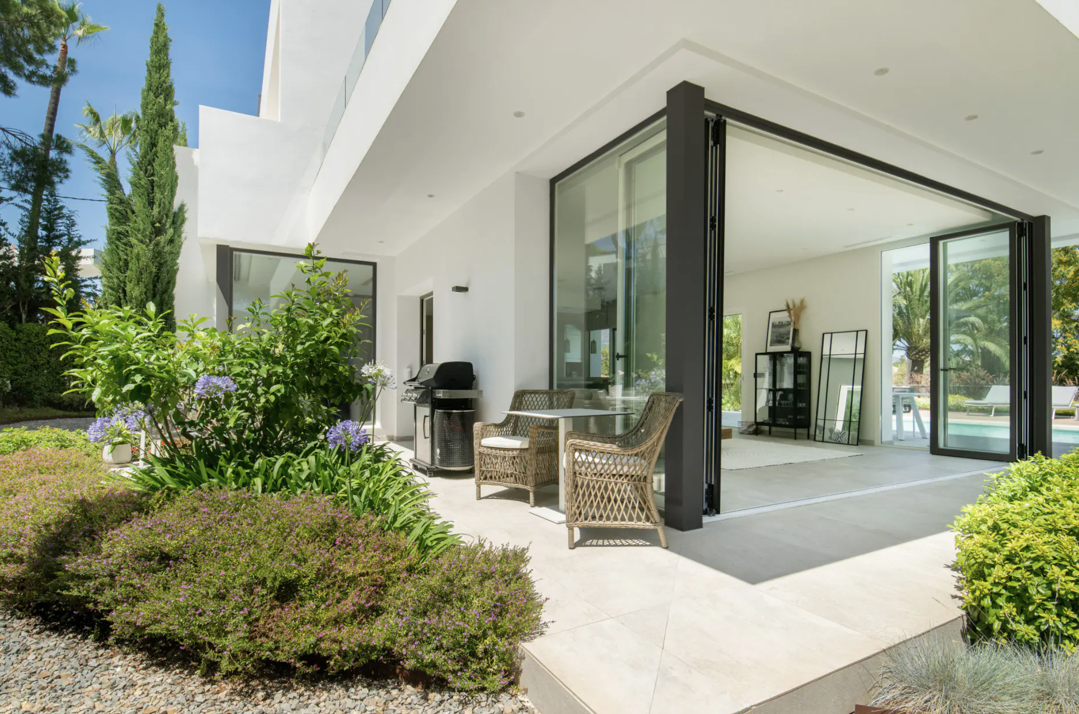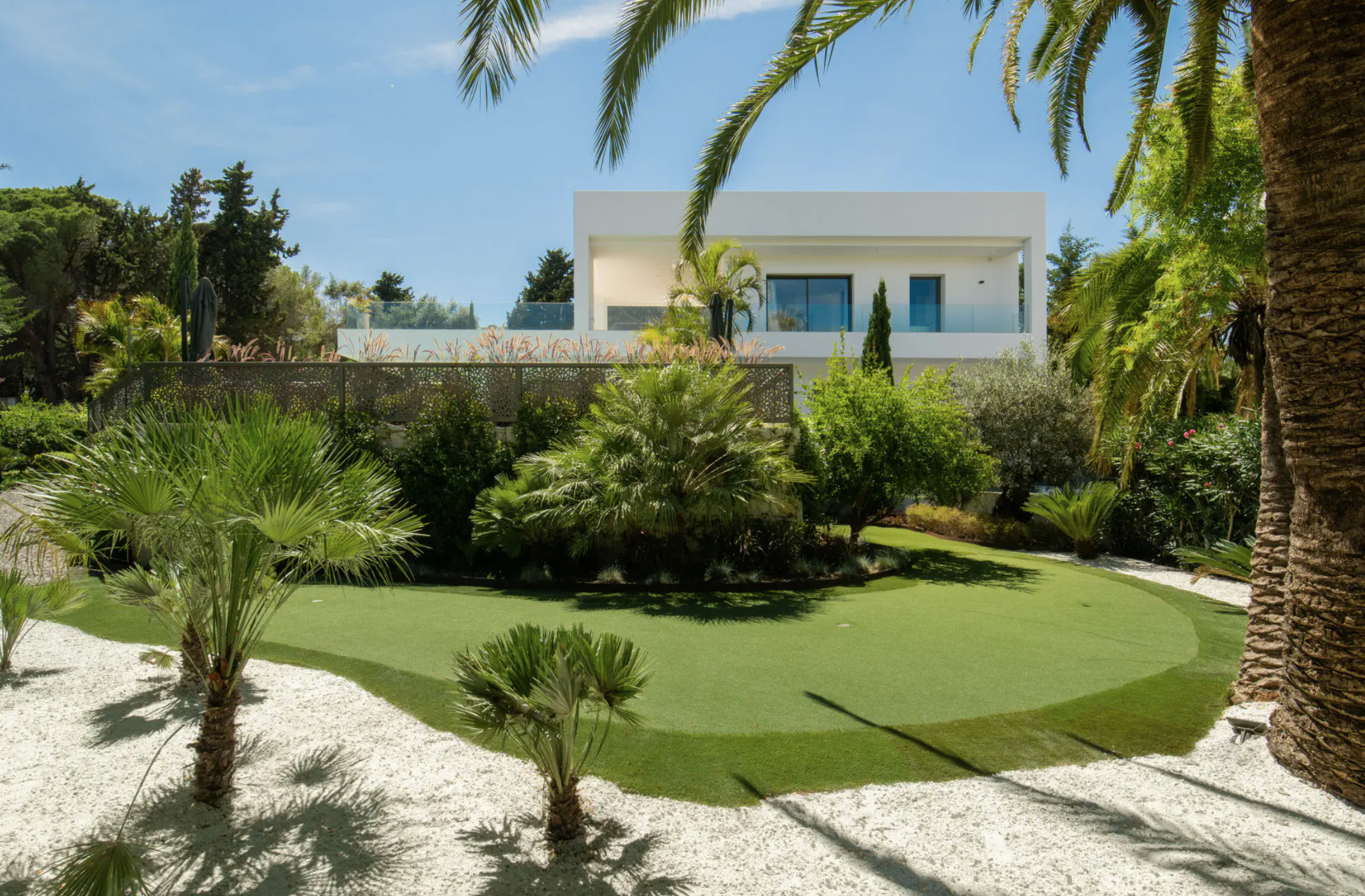 Kliv ut för att upptäcka en vackert anlagd trädgård och inbjudande poolområde, komplett med solstolar och lugna sittplatser som gör utomhusliv till en daglig njutning. Villan har också en privat puttinggreen och en lekplats för barn - perfekt för familjer eller golfentusiaster som vill vara aktiva och underhållna under den andalusiska solen.