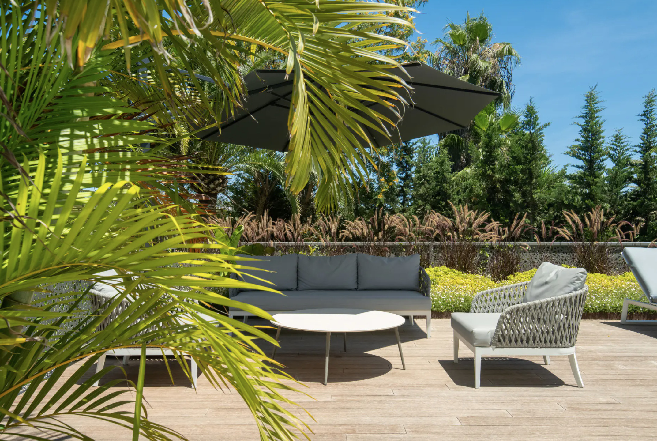 Kliv ut för att njuta av välansade trädgårdar och lugna ytor designade för avkoppling. Poolen är omgiven av frodig grönska och kompletteras av skuggiga matplatser och loungeområden - perfekt för avkoppling på eftermiddagen eller kvällssammankomster. En carport med laddningsstation för elfordon underlättar din vistelse, medan ett säkert larmsystem ger extra sinnesro.