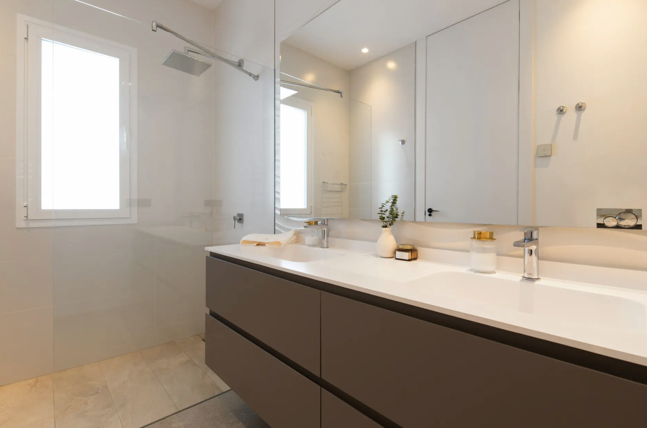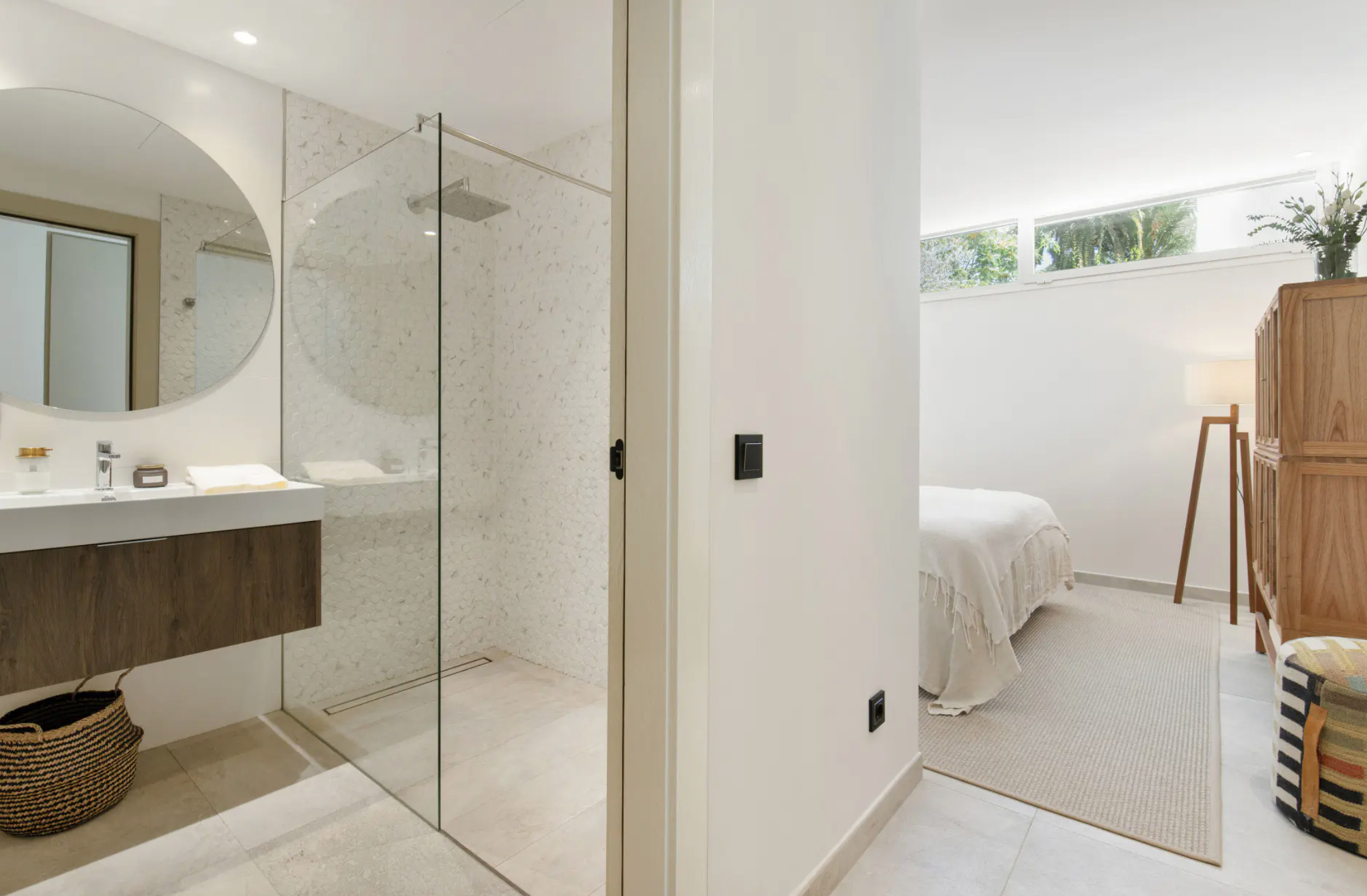 Inuti imponerar Villa Serenis med sin genomtänkta planlösning och subtila lyx. Varje sovrum är utrustat med premiummadrasser av memory foam, ett urval av olika kuddar—från stödjande memory foam till mjukare alternativ—och mysiga, eleganta lakan för en vilsam natts sömn. Badrummen i hela huset har premiumfittings, inklusive moderna walk-in-duschar, stilfulla kakel och eleganta, moderna detaljer som skapar en spa-liknande atmosfär. En separat gästtoalett ger extra bekvämlighet för daglig användning eller när man har gäster.