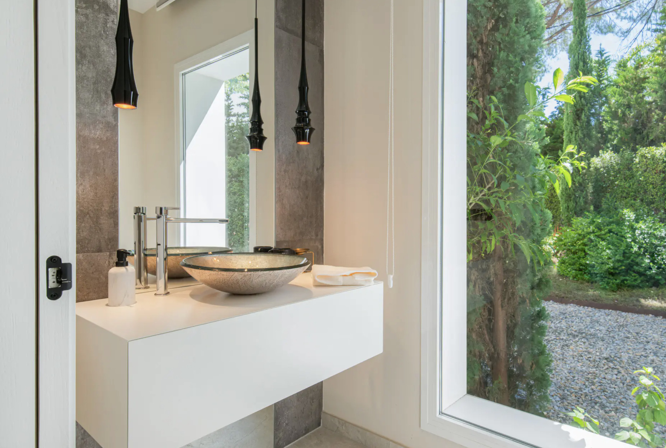 Belägen i den lugna Altos de Los Naranjos-gemenskapen är Villa Serenis perfekt placerad för golfälskare, med Los Naranjos Golf Club alldeles intill. Puerto Banús med sina designerbutiker, beach clubs och marinarestauranger ligger inom 10 minuters bilresa, medan Marbellas charmiga gamla stadskärna och sandstränder också finns i närheten. Oavsett om du är här för att vila, återförenas eller uppleva en touch av lyxigt boende, erbjuder Villa Serenis allt i en miljö som känns som hemma.